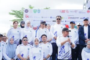 BANDING AGUNG – Gubernur Sumatera Selatan H. Herman Deru didampingi Bupati Ogan Komering Ulu Selatan Abusama, S.H., memlepas secara resmi Para Goweser Sriwijaya Ranau Gran Fondo (SRGF) Tahun 2025, Sabtu (15/11/2025). Bertempat di Plaza Icon Danau Ranau Kecamatan Banding Agung Kabupaten OKU Selatan
